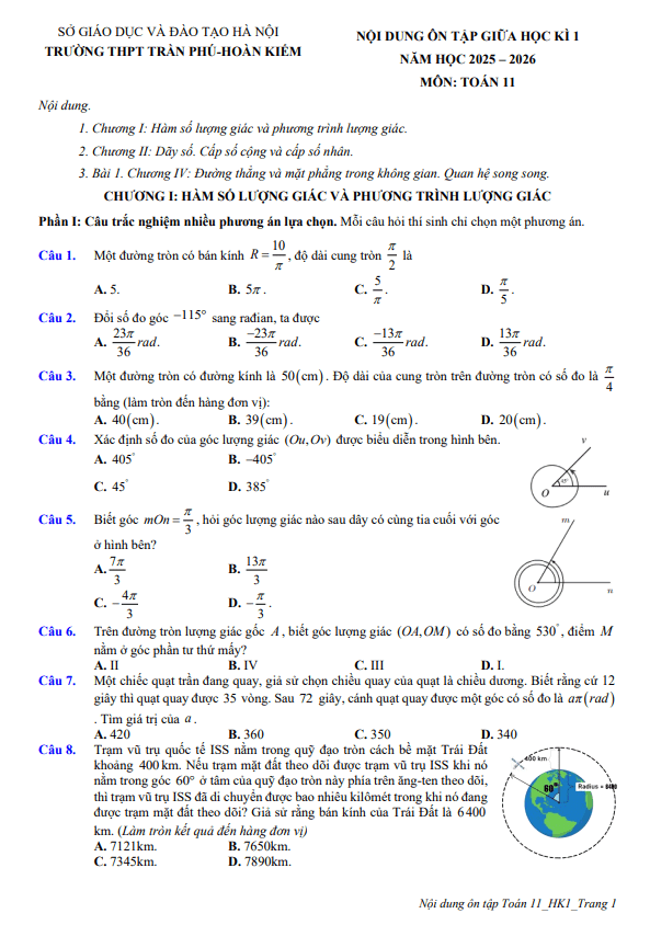 Chương 1: Hàm số lượng giác và phương trình lượng giác.