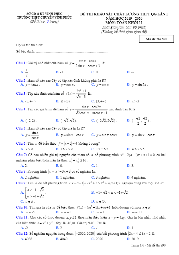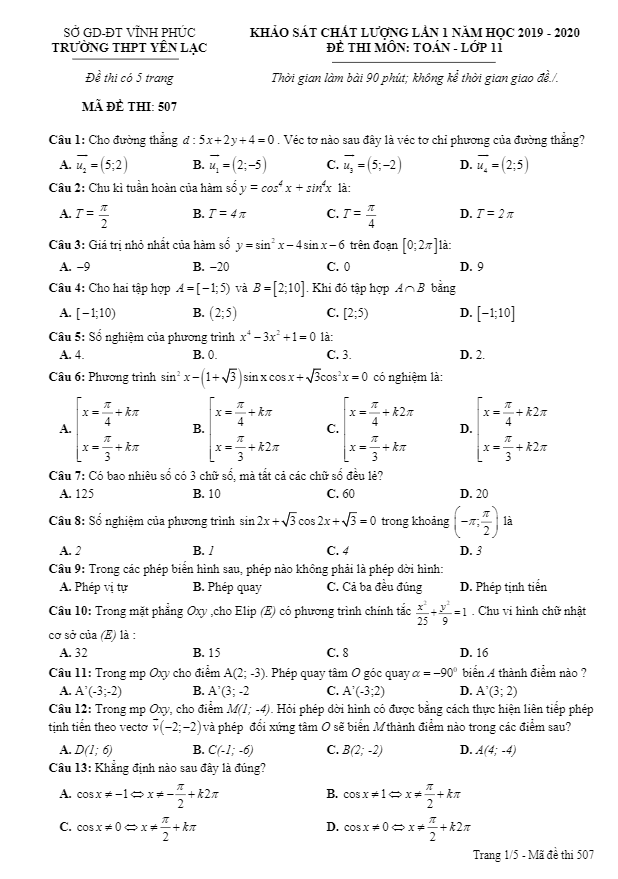 Khảo Sát Chất Lượng Toán 11