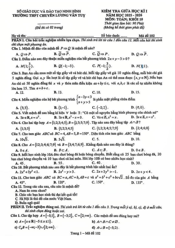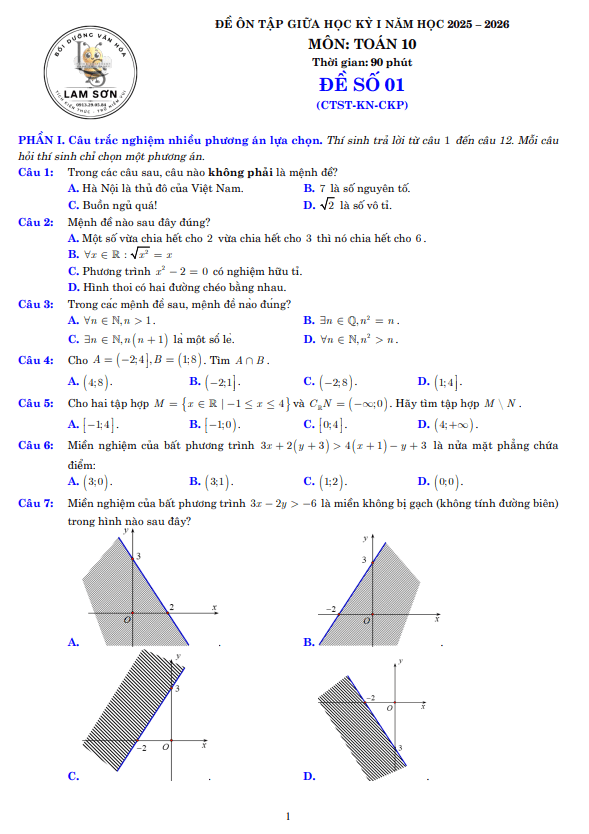 Ngày … tháng 12 năm 2019, trường THPT chuyên Thăng Long, thành phố Đà Lạt, tỉnh Lâm Đồng tổ chức kì thi kiểm tra khảo sát chất lượng môn Toán lớp 10 giai đoạn cuối học kì 1 năm học 2019 – 2020.