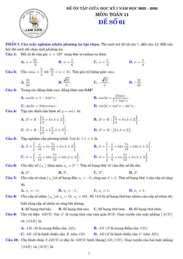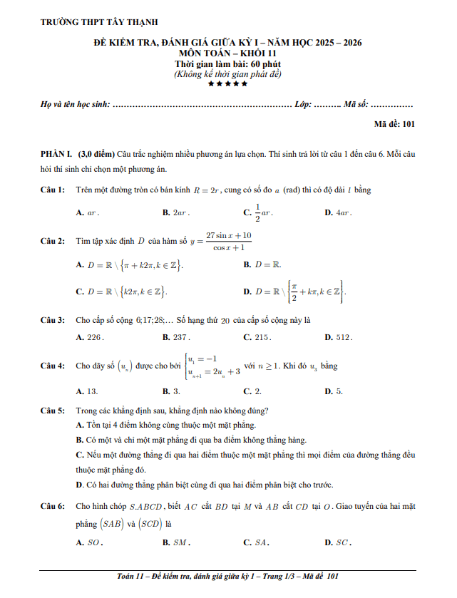 Đề thi HK1 Toán 10 năm 2019 – 2020 trường chuyên Thăng Long – Lâm Đồng mã đề 181 gồm có 4 trang, đề được biên soạn theo dạng trắc nghiệm kết hợp tự luận theo tỉ lệ điểm 70 : 30. phần trắc nghiệm gồm 35 câu, phần tự luận gồm 3 câu, học sinh có 90 phút để hoàn thành bài thi học kì, đề thi có đáp án và lời giải chi tiết.