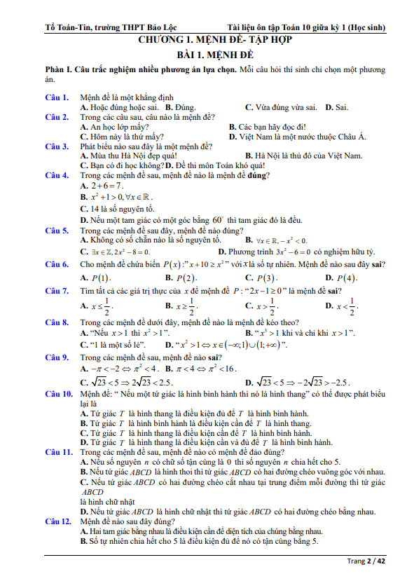 Trích dẫn đề thi HK1 Toán 10 năm 2019 – 2020 trường chuyên Thăng Long – Lâm Đồng: