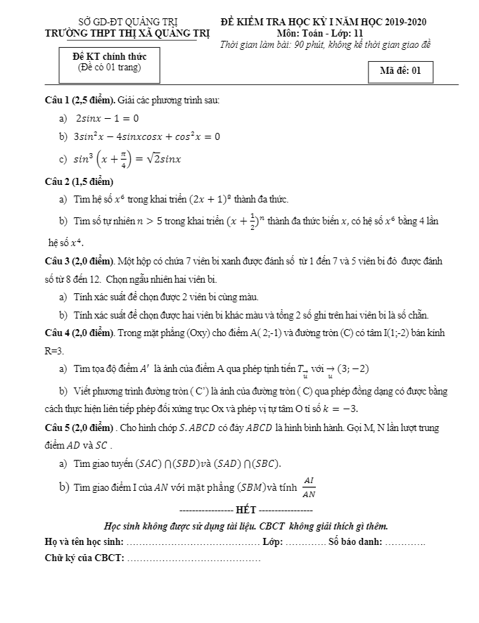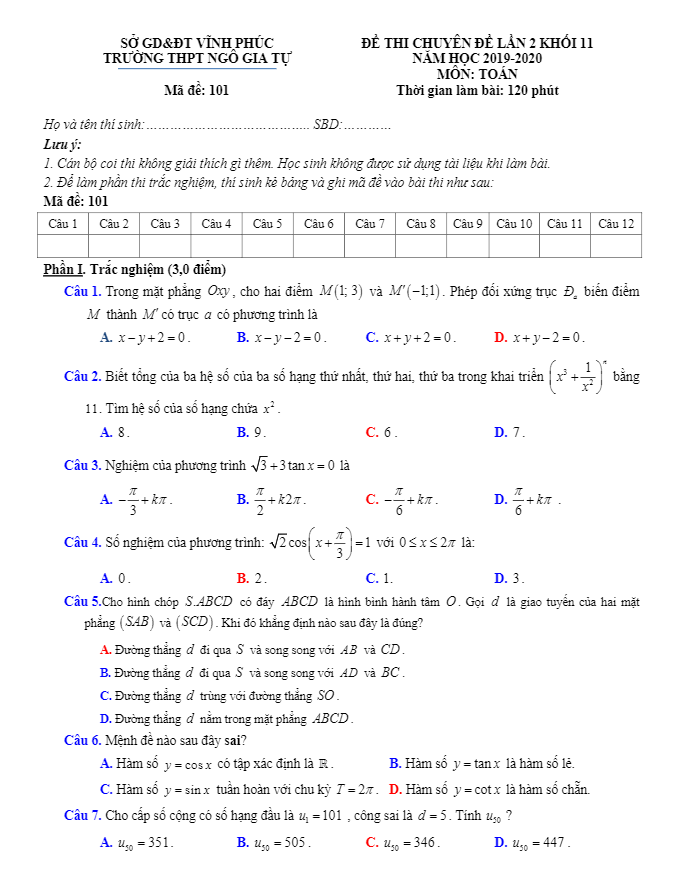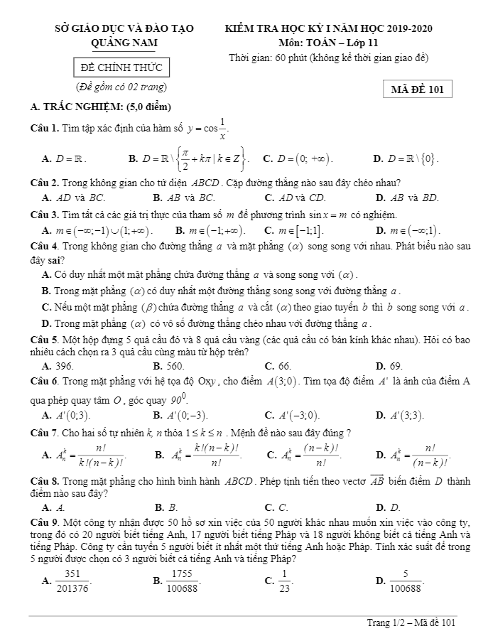 Khảo Sát Chất Lượng Toán 11