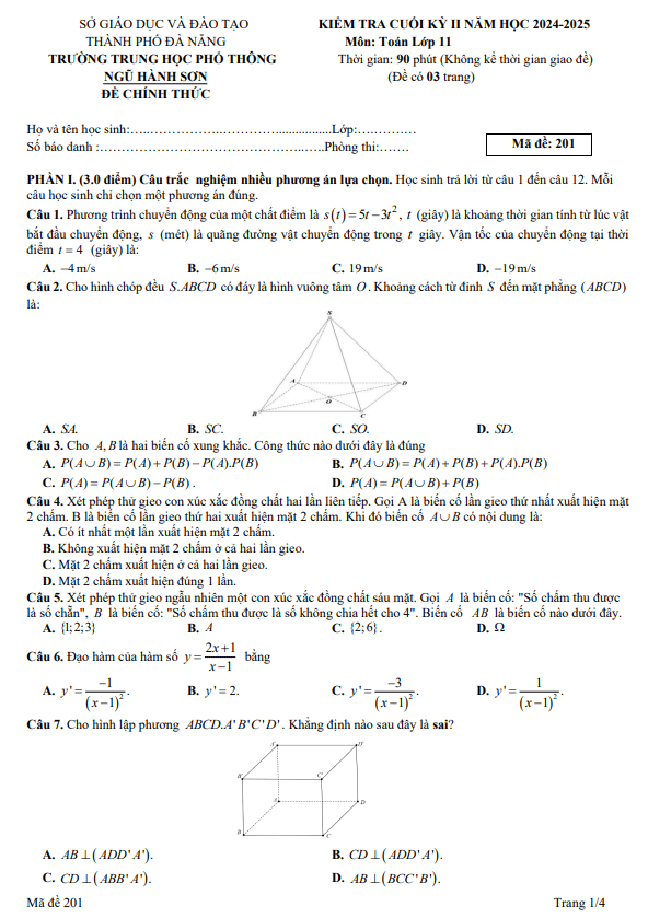 Đề thi HK2 Toán 11 năm 2019 – 2020 trường THPT chuyên Hà Nội – Amsterdam