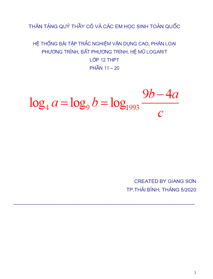 Hàm Số Mũ Và Hàm Số Lôgarit Hệ thống bài tập trắc nghiệm VDC PT – BPT – HPT mũ – logarit (phần 11 – 20) 11/07/2020