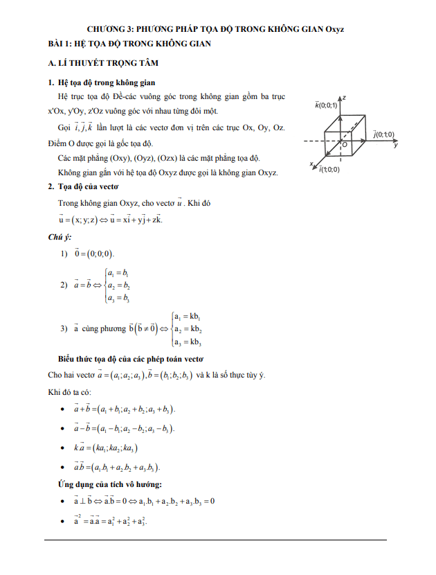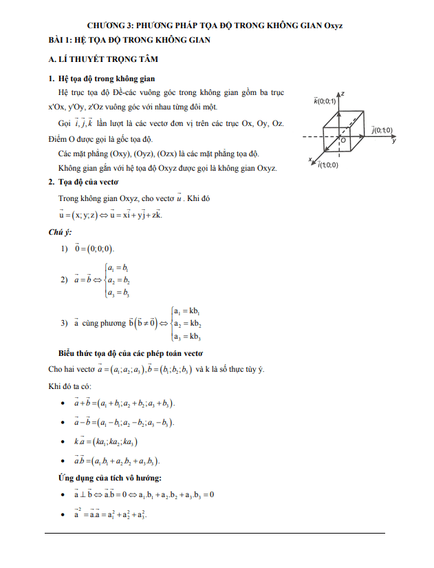 Phương Pháp Toạ Độ Trong Không Gian Các dạng bài tập VDC phương pháp tọa độ trong không gian 21/08/2020