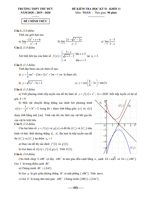 Đề Thi HK2 Toán 11 Đề thi học kì 2 Toán 11 năm 2019 – 2020 trường THPT Mạc Đĩnh Chi – TP HCM 01/08/2020