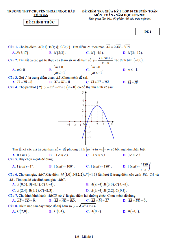 Đề Thi Giữa HK1 Toán 10 Đề giữa kỳ 1 Toán 10 chuyên năm 2020 – 2021 trường chuyên Thoại Ngọc Hầu – An Giang 15/11/2020