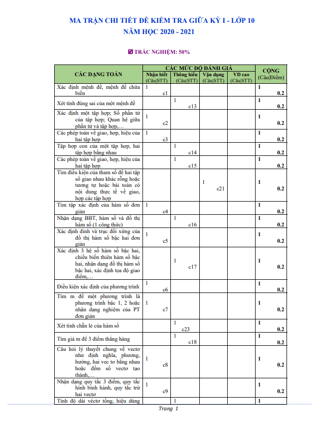 Đề Thi Giữa HK1 Toán 10 Đề kiểm tra giữa kì 1 Toán 10 năm 2020 – 2021 trường THPT Mỹ Đức C – Hà Nội 13/11/2020