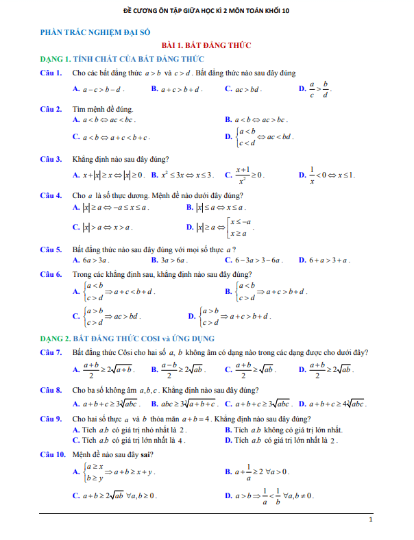 Đề Thi Giữa HK2 Toán 12 Đề thi giữa HK2 Toán 12 năm 2020 – 2021 trường chuyên Lê Hồng Phong – Nam Định 11/03/2021