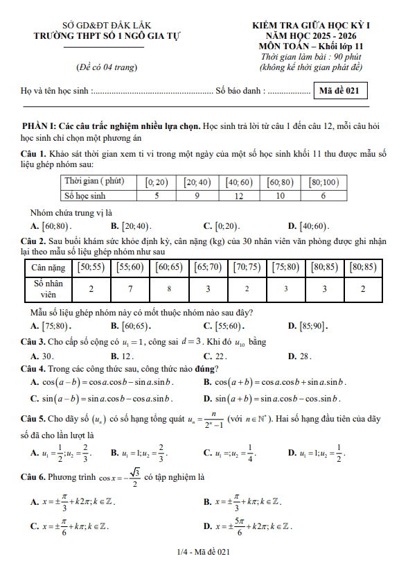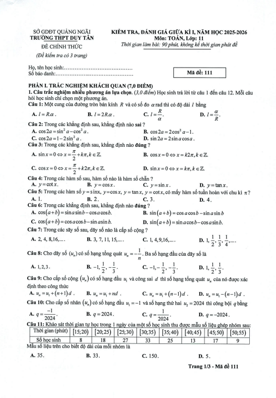PHẦN I. ĐẠI SỐ – GIẢI TÍCH 11