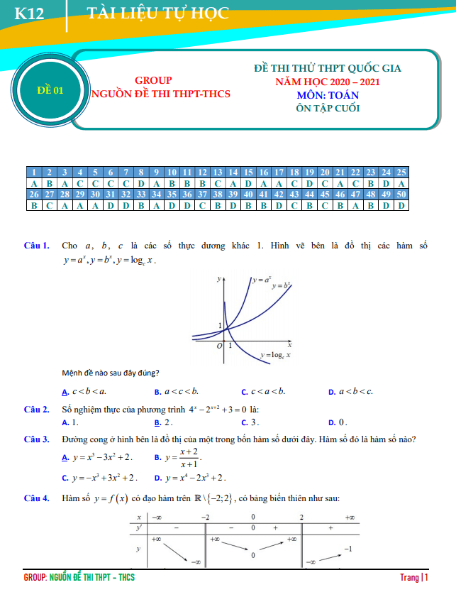 Tuyển tập đề thi thử tốt nghiệp THPT 2021 môn Toán có lời giải chi tiết