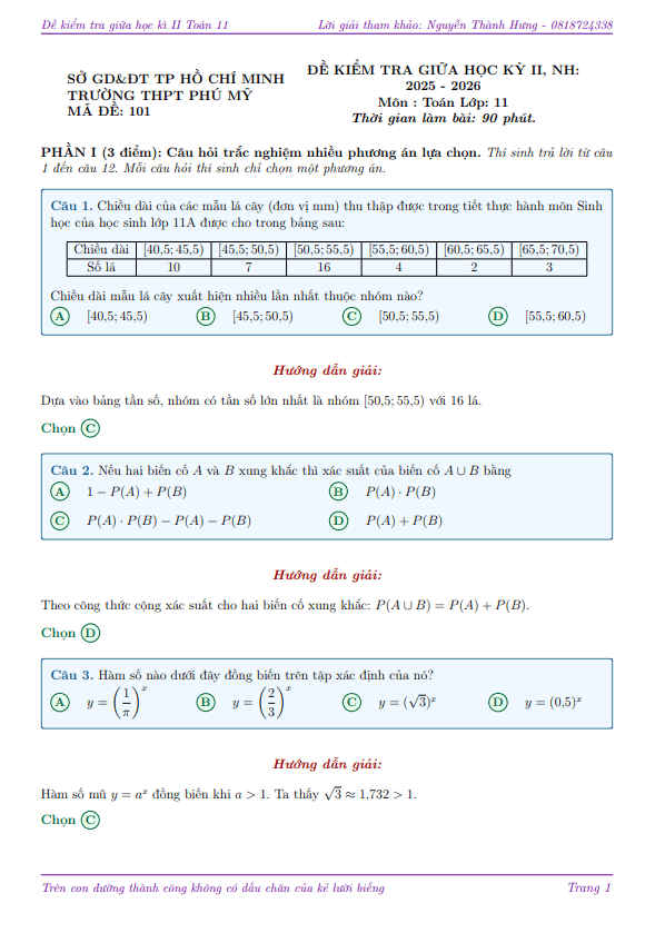 Các đề được biên soạn theo hình thức: đề thi 70% trắc nghiệm kết hợp 30% tự luận hoặc đề thi 100% trắc nghiệm, thời gian làm bài 90 phút; nội dung câu hỏi bám sát các đề thi giữa học kì 2 môn Toán 11 của các trường THPT và sở GD&ĐT trên toàn quốc.