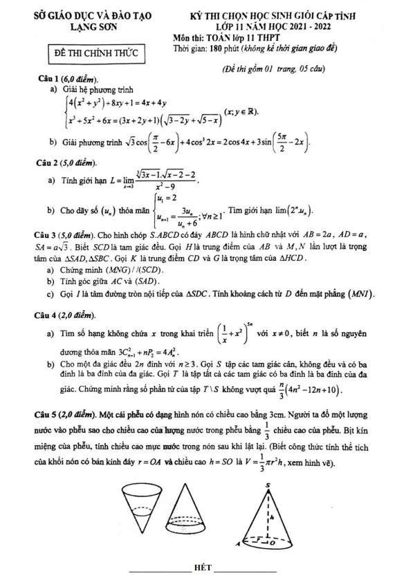 Đề Thi HSG Toán 11 Đề thi học sinh giỏi cấp tỉnh Toán 11 năm 2021 – 2022 sở GD&ĐT Lạng Sơn 02/04/2022