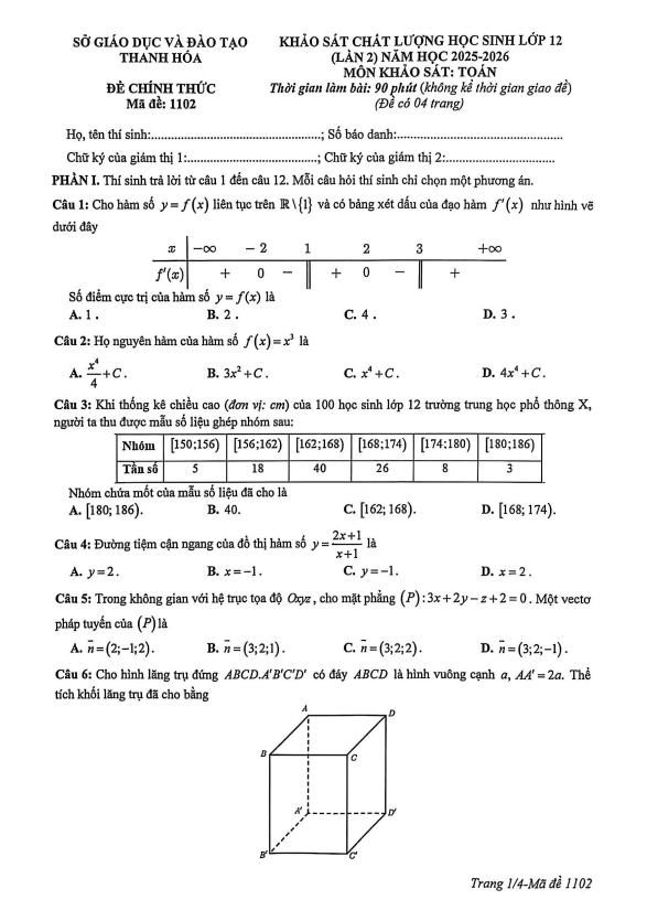 Đề Thi Thử THPT Môn Toán Đề khảo sát chất lượng Toán 12 đợt 2 cuối năm 2021 – 2022 sở GD&ĐT Nam Định 19/06/2022