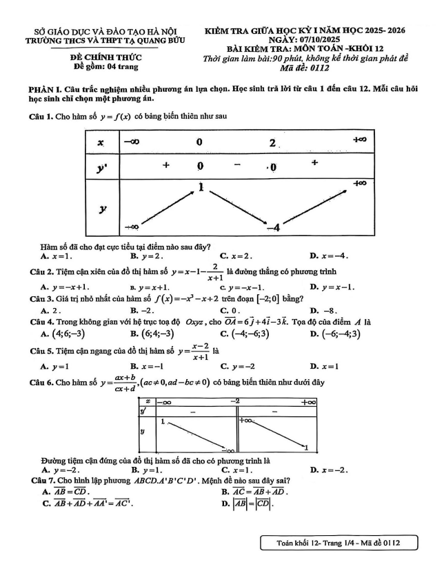 Trích dẫn đề thi thử tốt nghiệp THPT 2022 môn Toán trường THPT Lao Bảo – Quảng Trị: