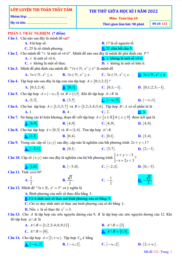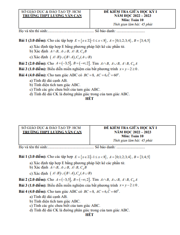 Đề Thi Giữa HK1 Toán 10 Đề thi giữa HKI Toán 10 năm 2022 – 2023 trường THPT Lương Văn Can – TP HCM 31/10/2022