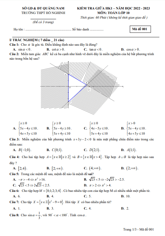 Đề Thi Giữa HK1 Toán 10 Đề giữa học kì 1 Toán 10 năm 2022 – 2023 trường THPT Hồ Nghinh – Quảng Nam 31/10/2022