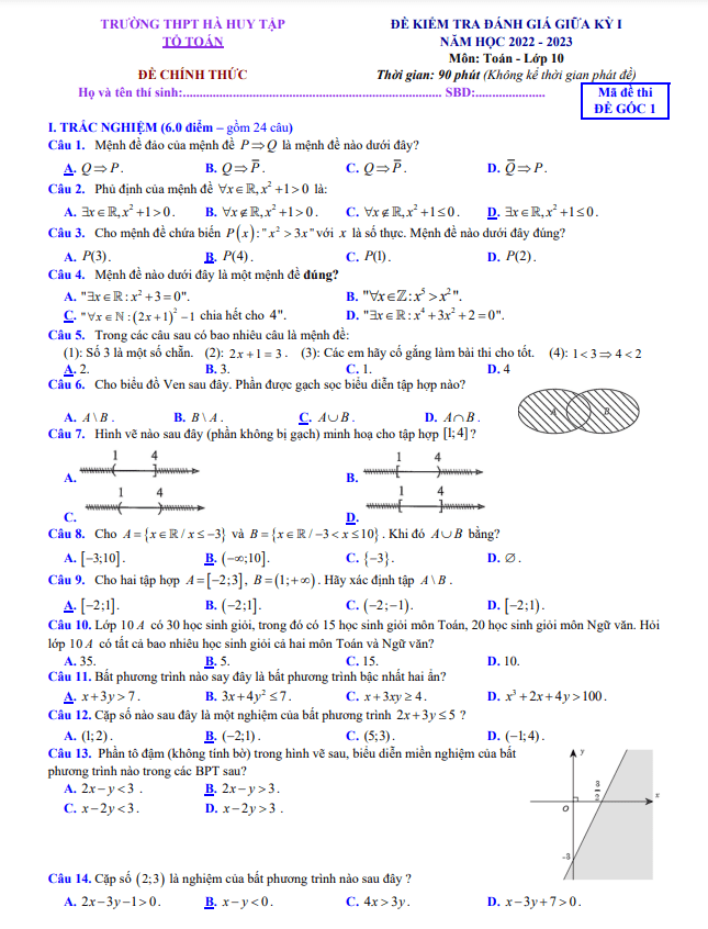 Đề Thi Giữa HK1 Toán 10 Đề giữa học kỳ 1 Toán 10 năm 2022 – 2023 trường THPT Hà Huy Tập – Hà Tĩnh 28/10/2022