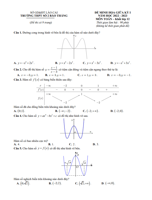 Đề Thi Giữa HK1 Toán 12 Đề minh họa Toán 12 giữa kì 1 năm 2022 – 2023 trường THPT Bảo Thắng 2 – Lào Cai 30/10/2022