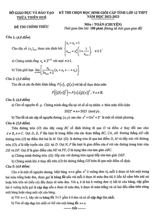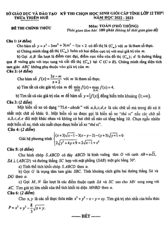 Đề Thi HSG Toán 12 Đề thi học sinh giỏi tỉnh Toán 12 (chuyên) năm 2022 – 2023 sở GD&ĐT Thừa Thiên Huế 30/10/2022