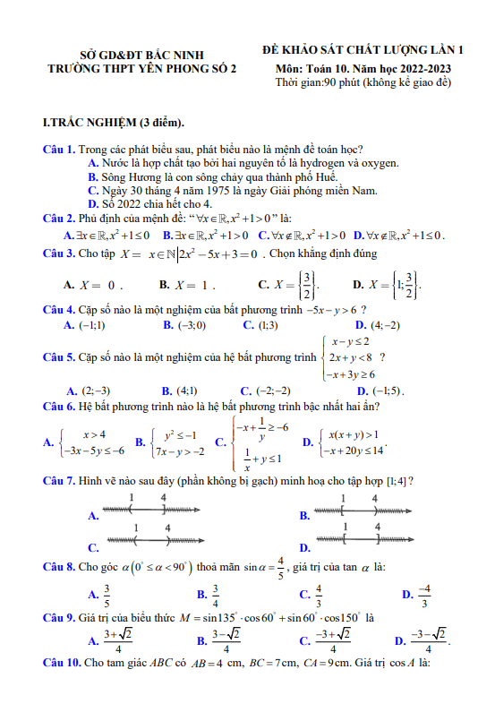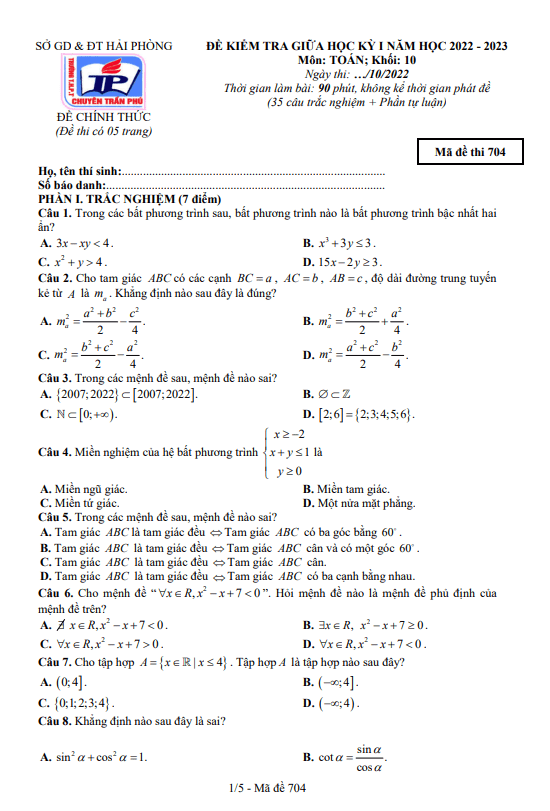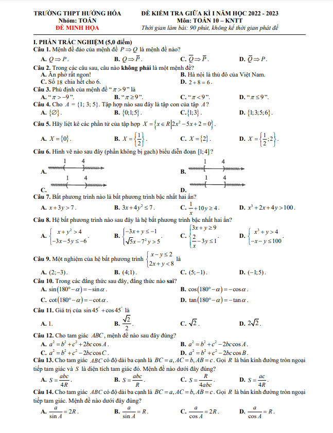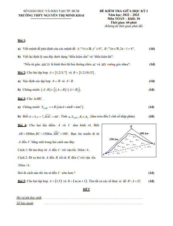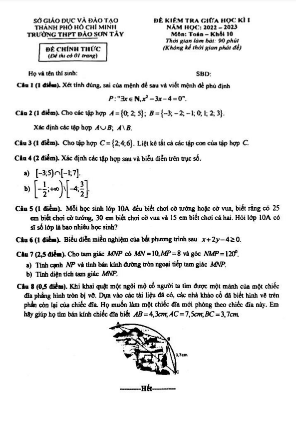Đề Thi Giữa HK1 Toán 10