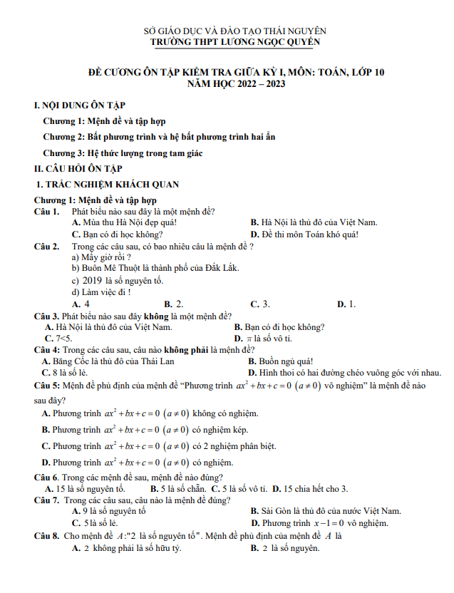 Đề Cương Ôn Tập Toán 10