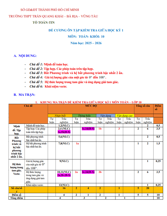 TOANMATH.com giới thiệu đến quý thầy, cô giáo và các em học sinh lớp 10 tài liệu đề cương hướng dẫn nội dung ôn tập học kì 1 môn Toán 10 năm học 2023 – 2024 trường THPT Trần Phú, quận Hoàn Kiếm, thành phố Hà Nội.