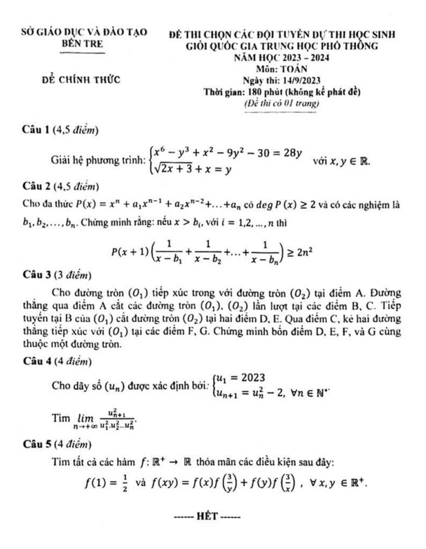 Đề Thi HSG Toán 12 Đề chọn đội tuyển thi HSG QG môn Toán năm 2023 – 2024 sở GD&ĐT Bình Phước 15/09/2023
