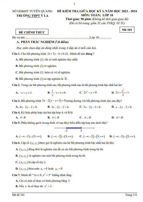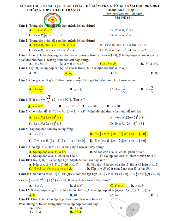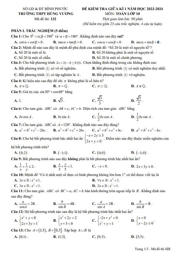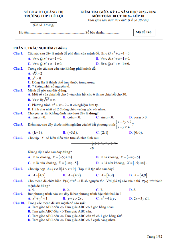 Đề Thi Giữa HK1 Toán 10