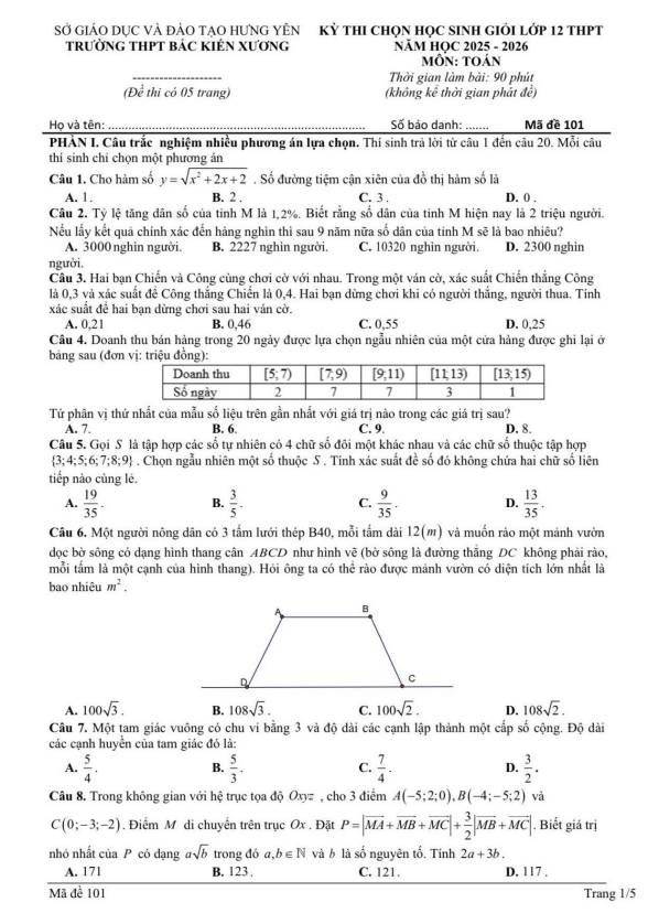 Trích dẫn Đề học sinh giỏi Toán THPT cấp tỉnh năm 2023 – 2024 sở GD&ĐT Hưng Yên: