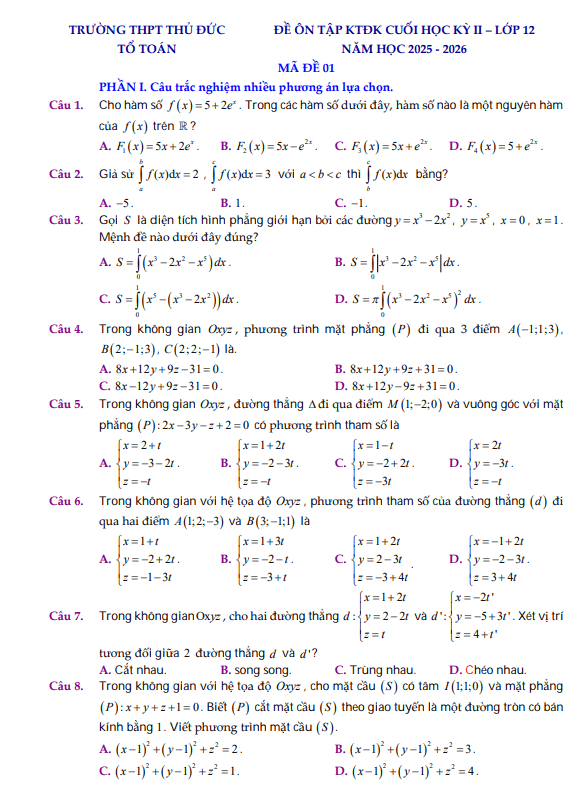 TOANMATH.com giới thiệu đến quý thầy, cô giáo và các em học sinh lớp 10 đề kiểm tra cuối học kì 1 môn Toán 10 năm học 2024 – 2025 trường THPT Duy Tân, tỉnh Kon Tum. Đề thi có đáp án mã đề 001 002 003 004.