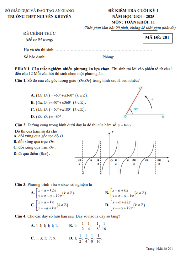Đề Thi HK1 Toán 11 Đề cuối kỳ 1 Toán 11 năm 2024 – 2025 trường THPT Nguyễn Khuyến – An Giang 25/12/2024