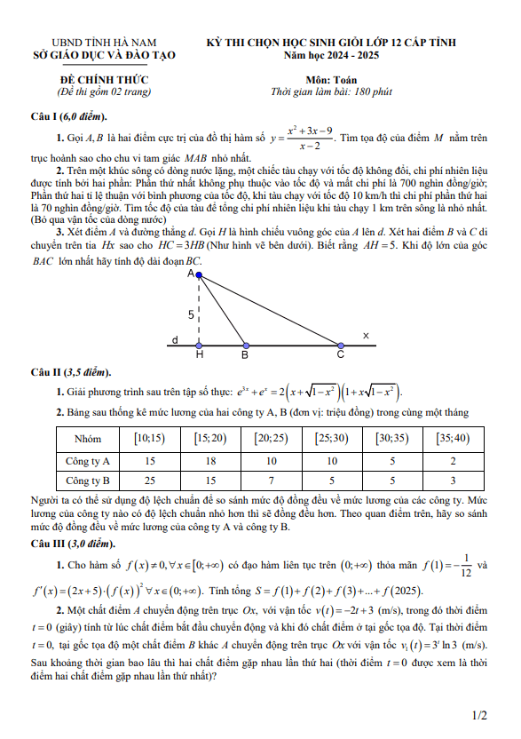 Khảo Sát Chất Lượng Toán 10 Đề khảo sát Toán 10 tháng 3 năm 2025 trường THPT Gia Bình 1 – Bắc Ninh 30/03/2025