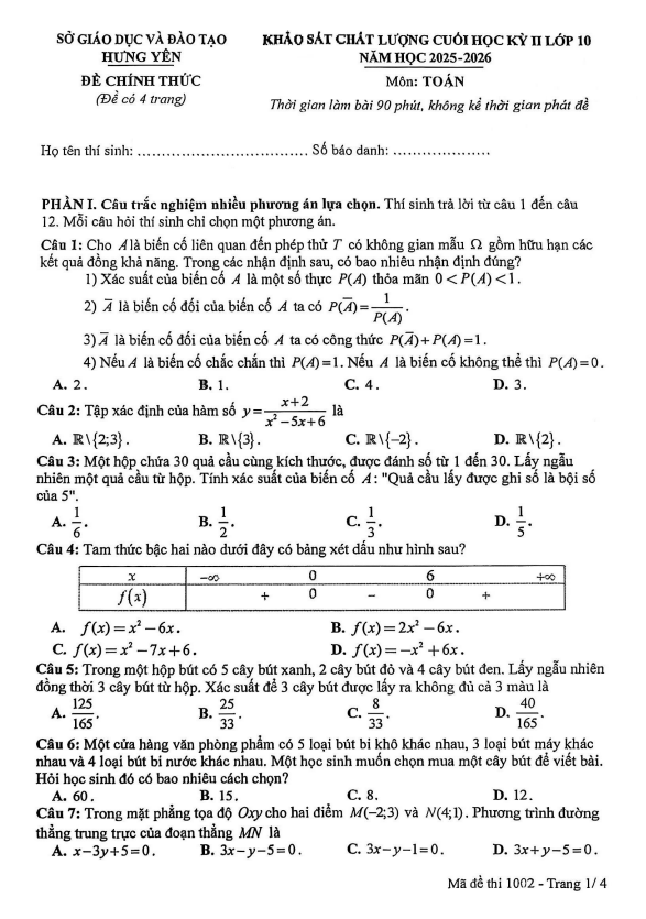 Trích dẫn Đề tham khảo TN THPT 2025 môn Toán trường chuyên Lương Thế Vinh – Đồng Nai: