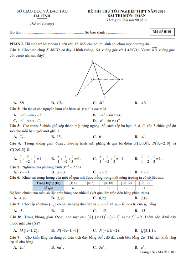 Đề Thi Thử THPT Môn Toán Đề thi thử TN THPT 2025 môn Toán trường THPT Phan Đình Phùng – Hà Nội 24/05/2025