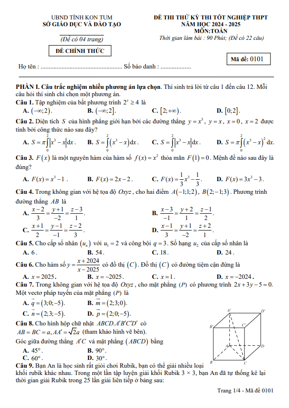 Đề Thi Thử THPT Môn Toán Đề thi thử tốt nghiệp THPT 2025 môn Toán liên trường THPT – Quảng Nam 24/05/2025