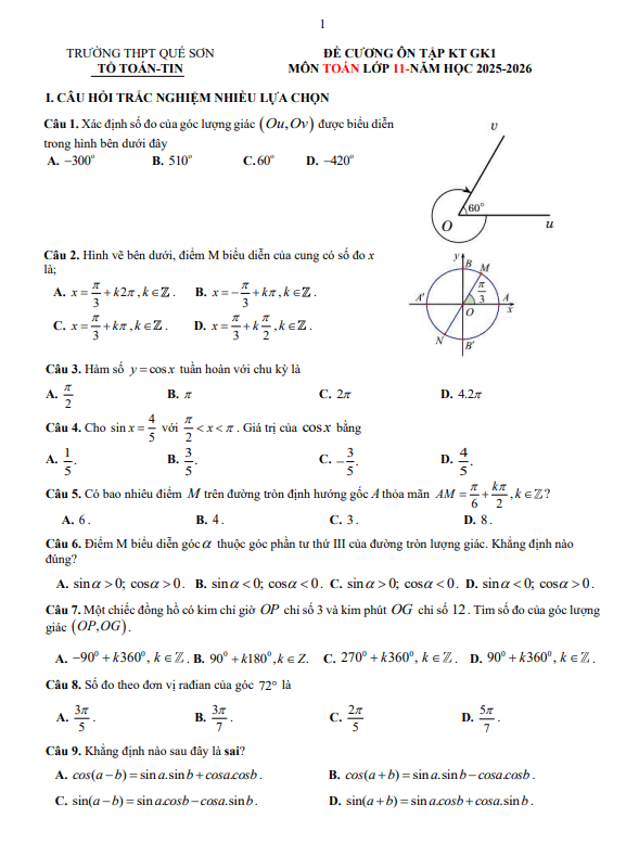 + Phần 1. Câu trắc nghiệm nhiều phương án lựa chọn.