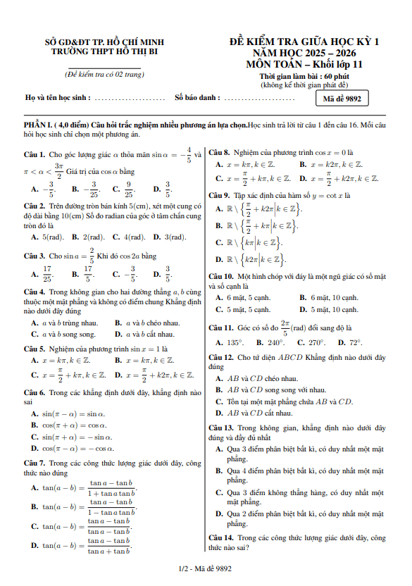 + Phần 1. Câu trắc nghiệm nhiều phương án lựa chọn (12 câu).