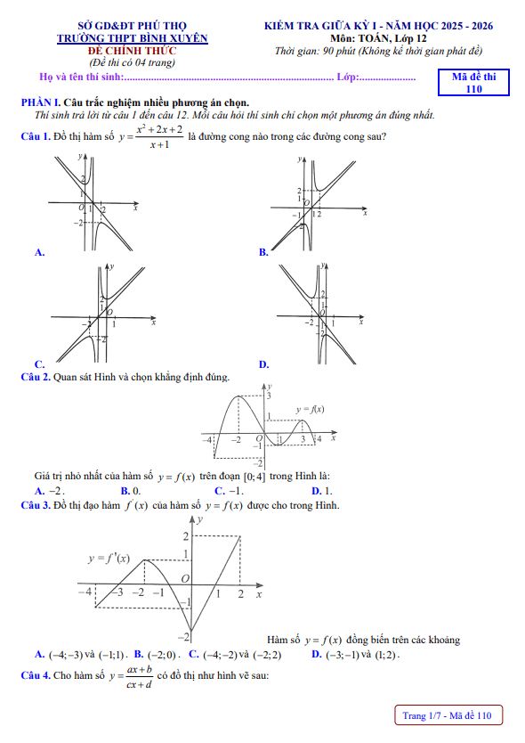 + Phần I. Câu trắc nghiệm nhiều phương án lựa chọn (30% – 12 câu).
