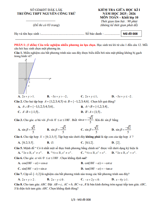 Trích dẫn Đề giữa kì 1 Toán 10 năm 2025 – 2026 trường THPT chuyên Vị Thanh – Cần Thơ: