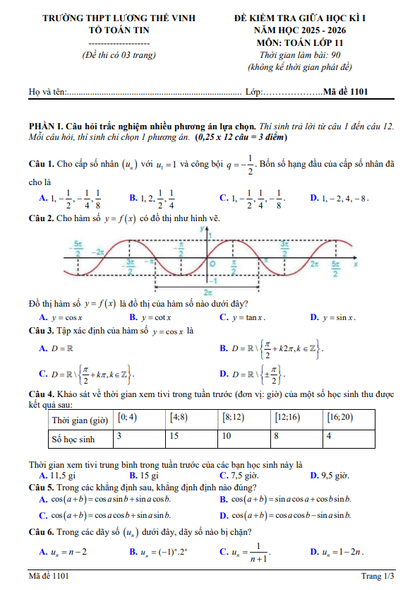 Đề giữa học kì 1 Toán 11 năm 2025 – 2026 trường THPT Lương Thế Vinh – Quảng Ninh