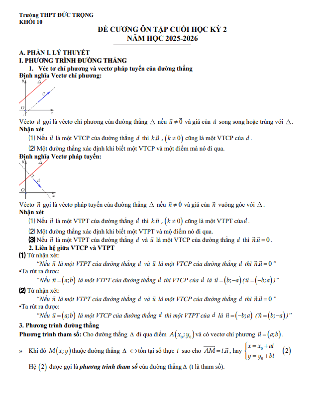 Đề cương cuối kỳ 2 Toán 10 năm 2025 – 2026 trường THPT Đức Trọng – Lâm Đồng