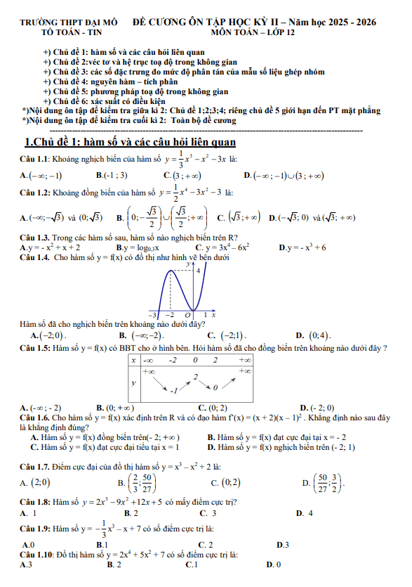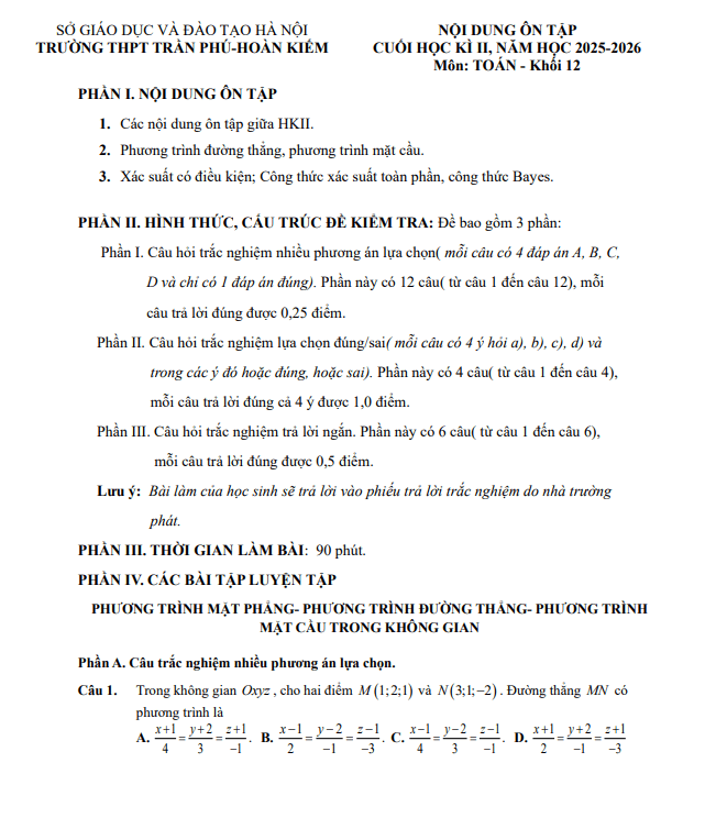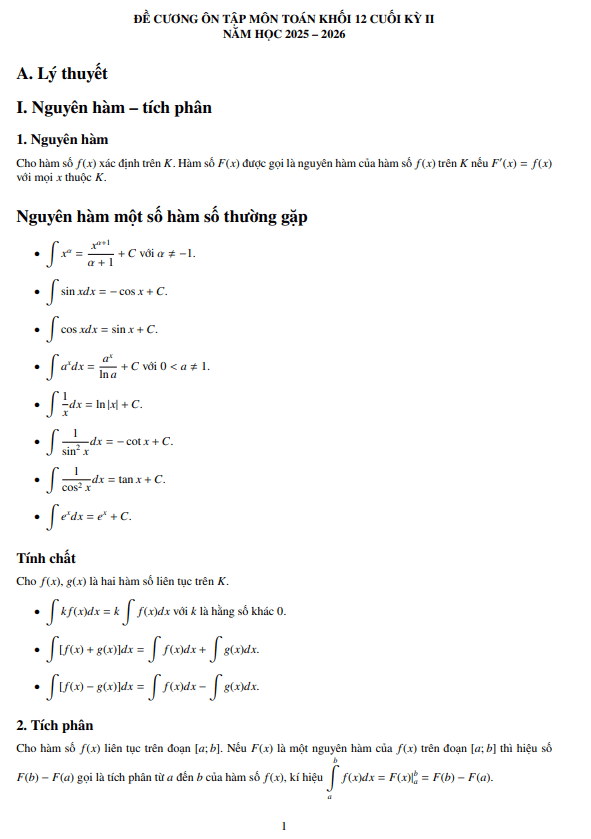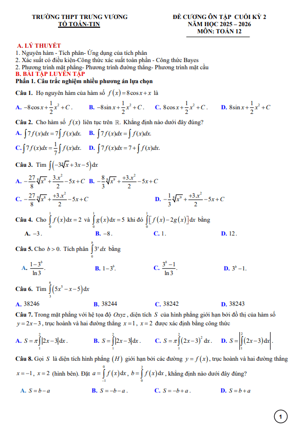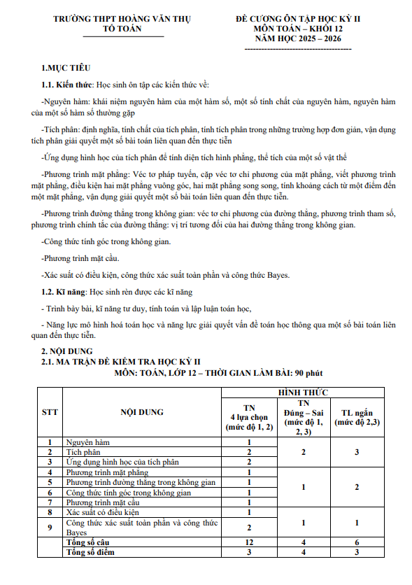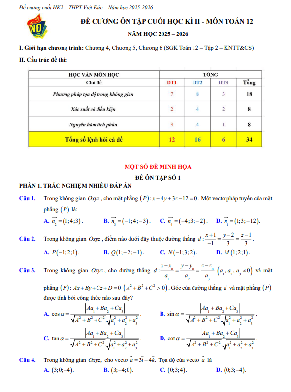 Đề cương cuối học kỳ 2 Toán 12 năm 2025 – 2026 trường THPT Quế Sơn – Đà Nẵng