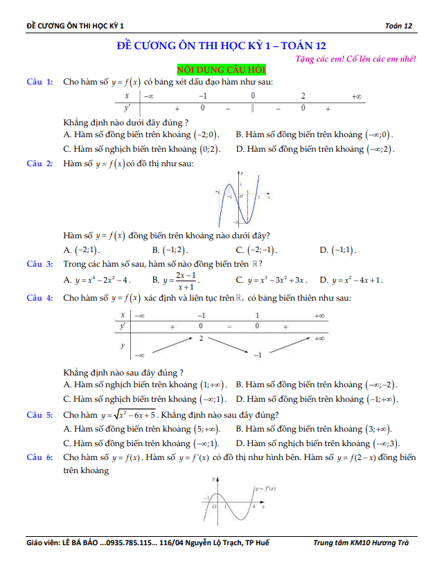 Tài liệu ôn thi học kì 1 môn Toán 12
