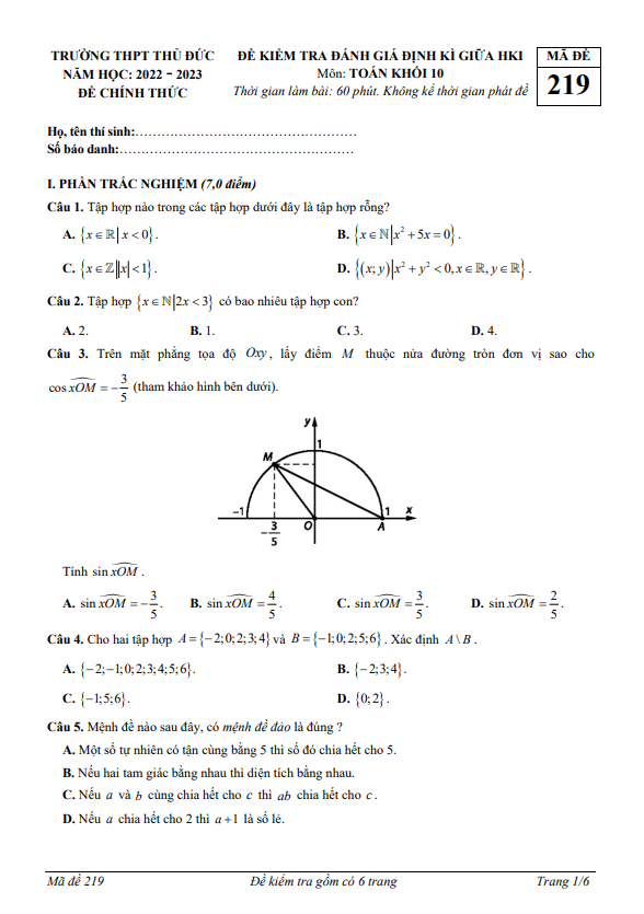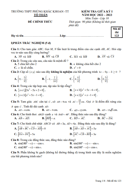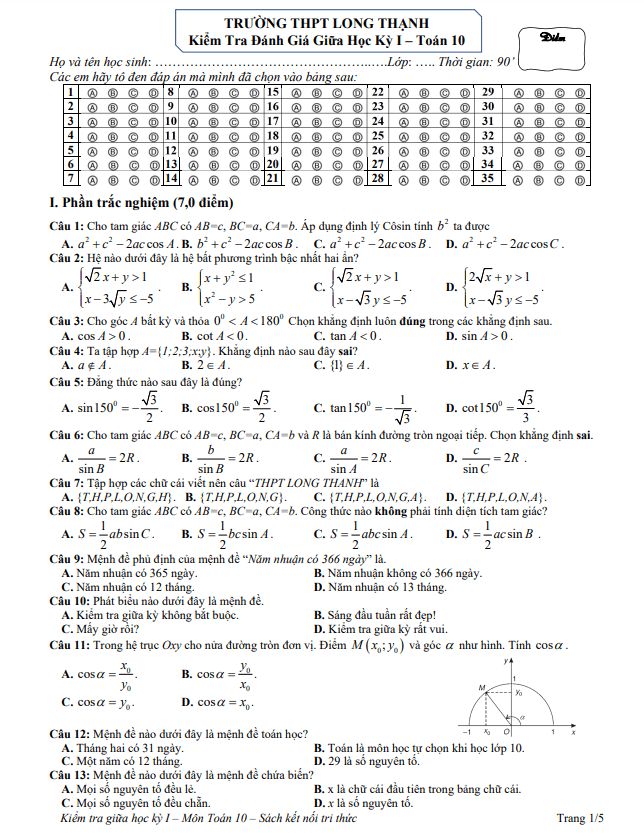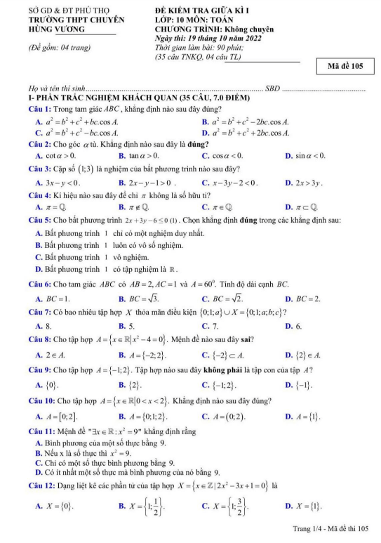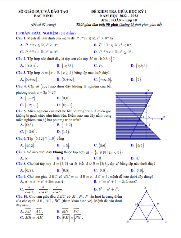 Tổng hợp ĐỀ THI GIỮA HK1 TOÁN 10 có đáp án và lời giải chi tiết của các trường Trung học Phổ thông, Sở Giáo dục và Đào tạo trên toàn quốc (File PDF). Các ĐỀ THI GIỮA HK1 TOÁN 10 mới nhất sẽ được cập nhật liên tục và nhanh nhất có thể sau khi kỳ thi diễn ra, đáp án và lời giải chi tiết cũng sẽ được TOANMATH.com cập nhật sau đó nhằm giúp bạn đọc thuận tiện trong việc tra cứu và đối chiếu đáp án.