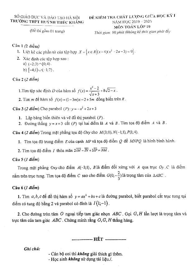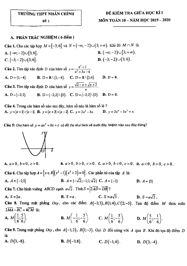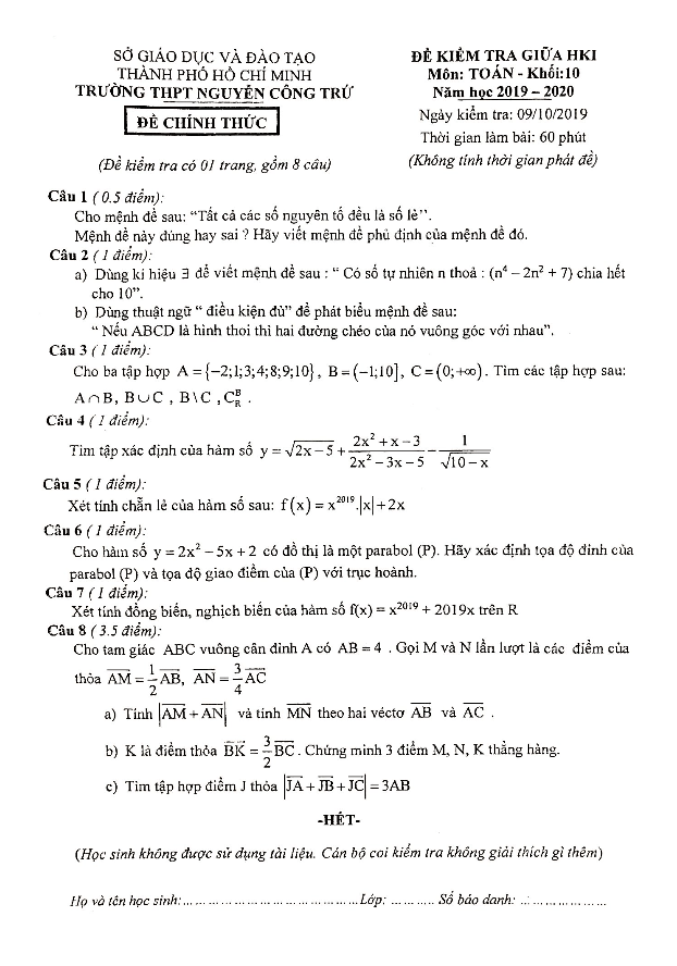 Tổng hợp ĐỀ THI GIỮA HK1 TOÁN 10 có đáp án và lời giải chi tiết của các trường Trung học Phổ thông, Sở Giáo dục và Đào tạo trên toàn quốc (File PDF). Các ĐỀ THI GIỮA HK1 TOÁN 10 mới nhất sẽ được cập nhật liên tục và nhanh nhất có thể sau khi kỳ thi diễn ra, đáp án và lời giải chi tiết cũng sẽ được TOANMATH.com cập nhật sau đó nhằm giúp bạn đọc thuận tiện trong việc tra cứu và đối chiếu đáp án.