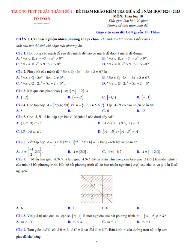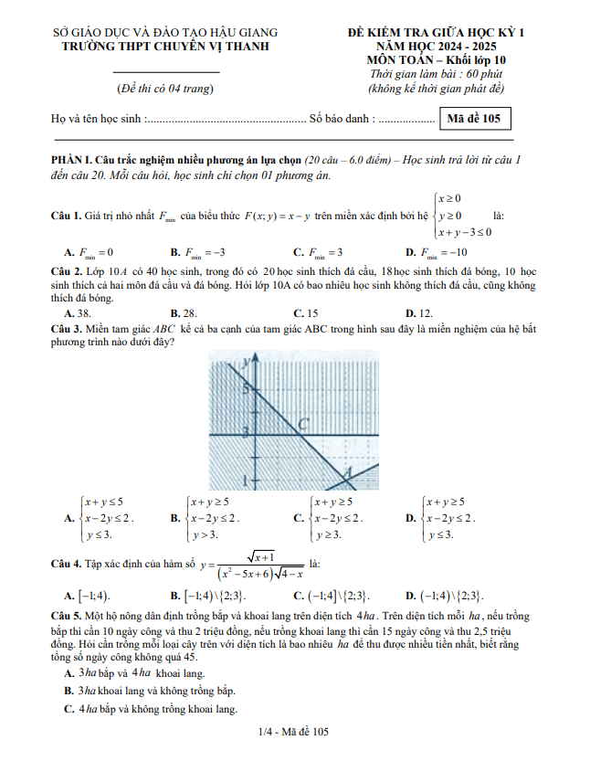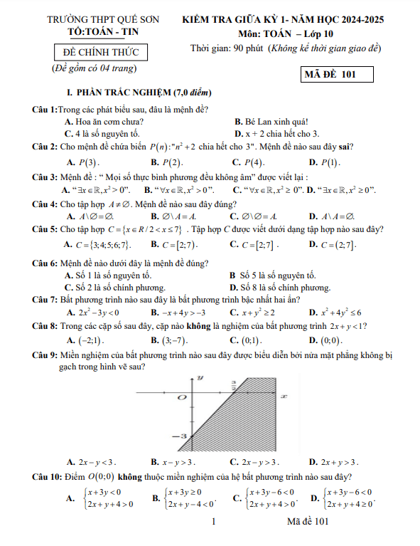 Tổng hợp ĐỀ THI GIỮA HK1 TOÁN 10 có đáp án và lời giải chi tiết của các trường Trung học Phổ thông, Sở Giáo dục và Đào tạo trên toàn quốc (File PDF). Các ĐỀ THI GIỮA HK1 TOÁN 10 mới nhất sẽ được cập nhật liên tục và nhanh nhất có thể sau khi kỳ thi diễn ra, đáp án và lời giải chi tiết cũng sẽ được TOANMATH.com cập nhật sau đó nhằm giúp bạn đọc thuận tiện trong việc tra cứu và đối chiếu đáp án.