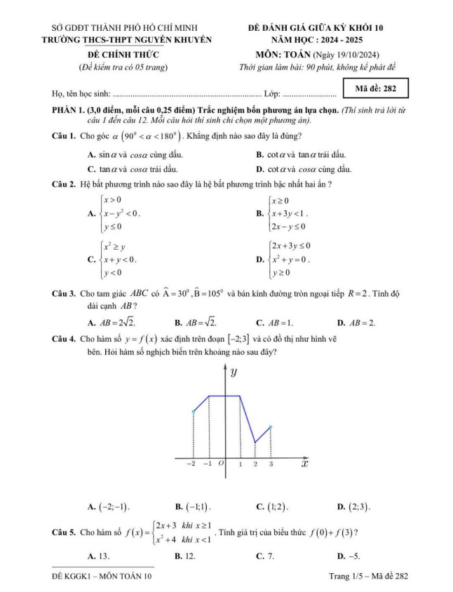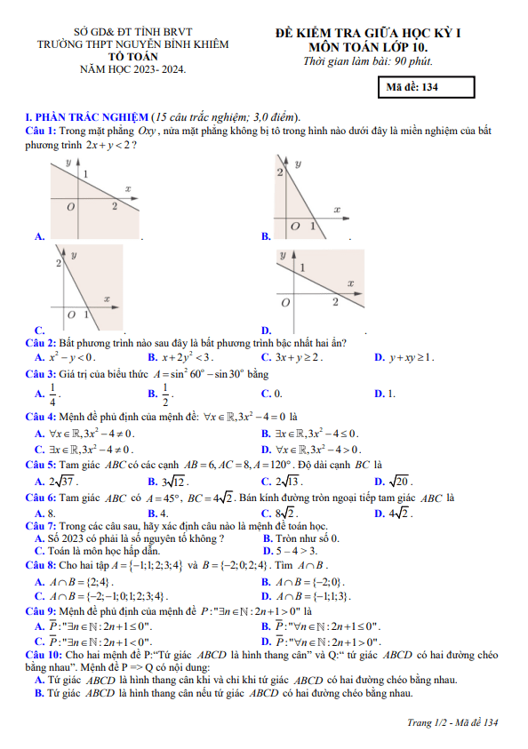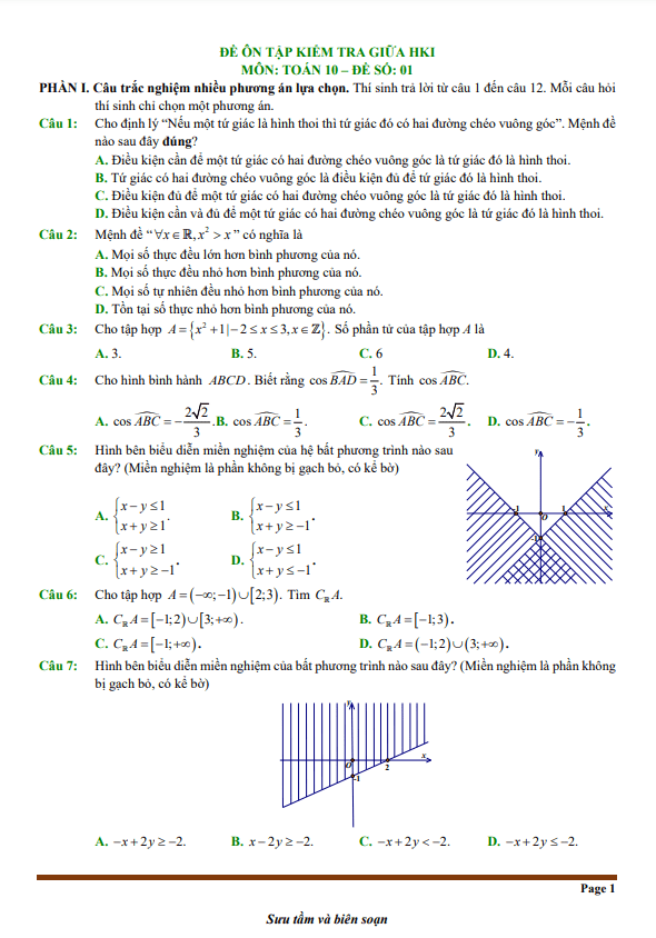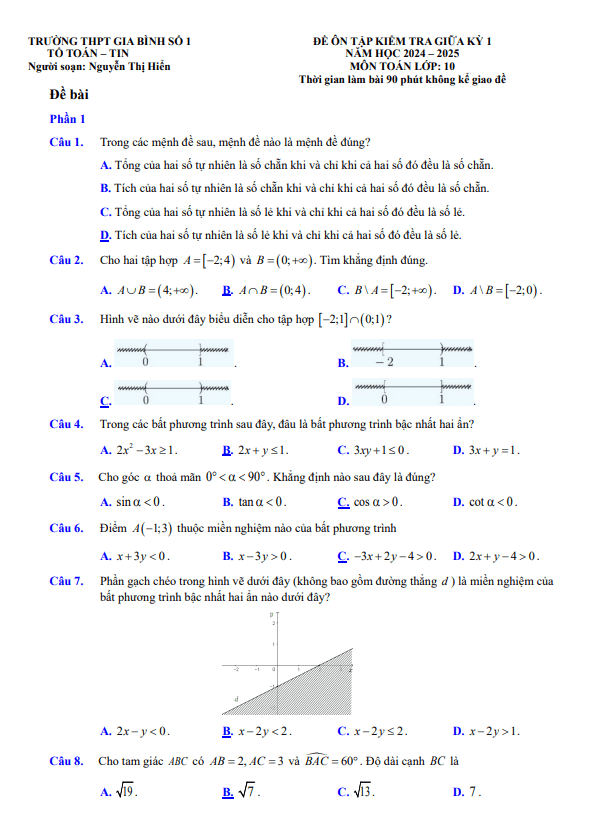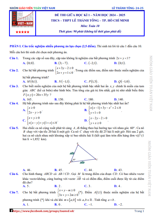 Tổng hợp ĐỀ THI GIỮA HK1 TOÁN 10 có đáp án và lời giải chi tiết của các trường Trung học Phổ thông, Sở Giáo dục và Đào tạo trên toàn quốc (File PDF). Các ĐỀ THI GIỮA HK1 TOÁN 10 mới nhất sẽ được cập nhật liên tục và nhanh nhất có thể sau khi kỳ thi diễn ra, đáp án và lời giải chi tiết cũng sẽ được TOANMATH.com cập nhật sau đó nhằm giúp bạn đọc thuận tiện trong việc tra cứu và đối chiếu đáp án.