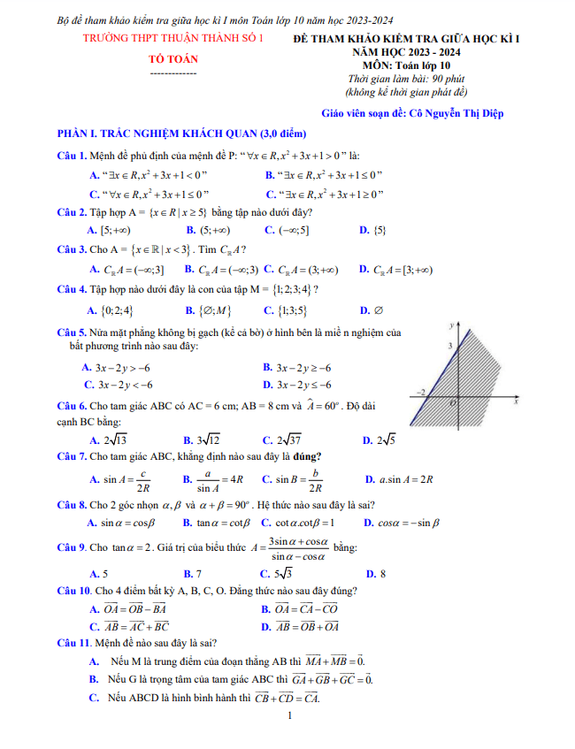 Bộ đề tham khảo giữa kì 1 Toán 10 năm 2023 – 2024 trường Thuận Thành 1 – Bắc Ninh