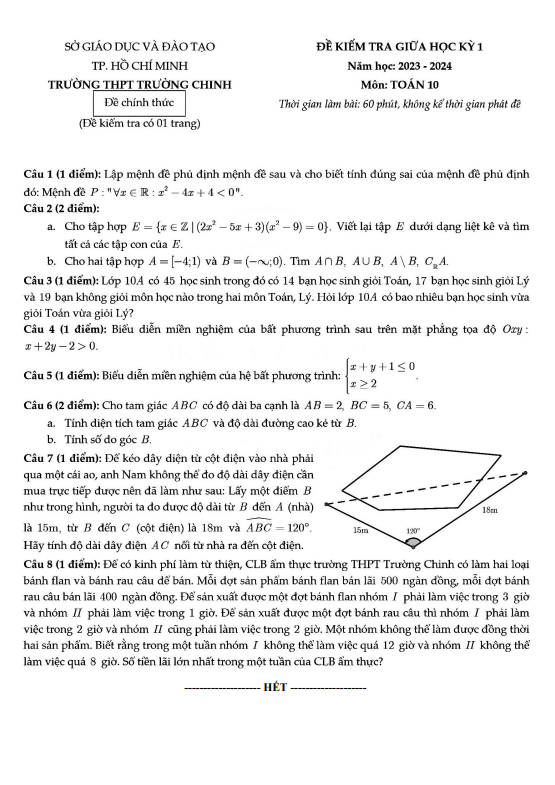 Đề giữa học kỳ 1 Toán 10 năm 2023 – 2024 trường THPT Trường Chinh – TP HCM